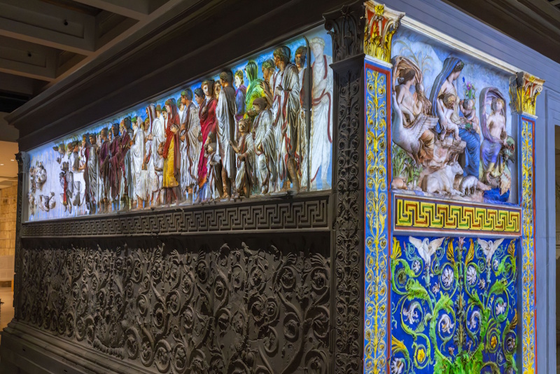 - il fronte occidentale, con i pannelli di Enea sacrificante ai Penati e del Lupercale;